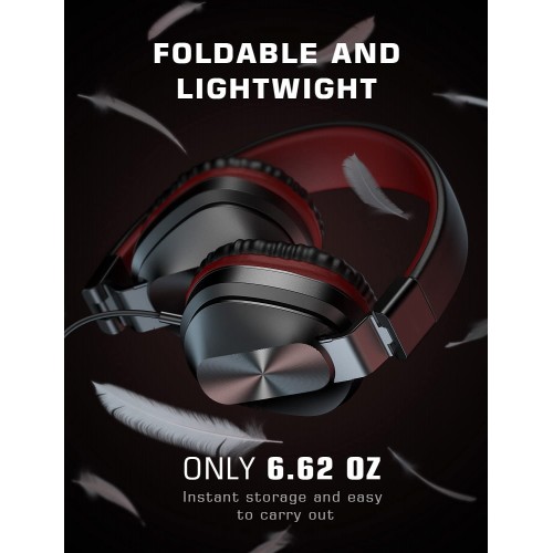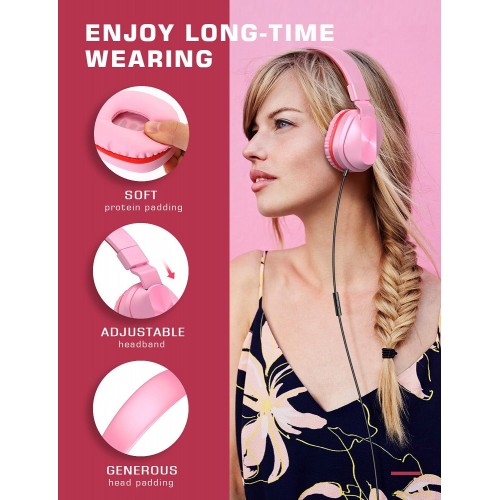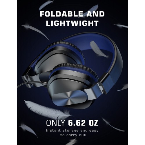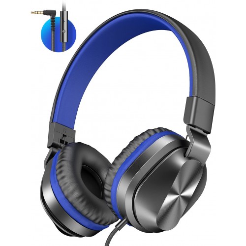 On-Ear Headphones with Microphone, Universal Foldable Wired Headphones for Adults Children Boys Girls Kids, Lightweight Portable Stereo Headphones with 1.5M Tangle-Free Cord for School Home Travel